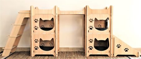Réalisé en contreplaqué 8 mm finition eucalyptus, l’Arbre à chat « Kawaii » – 9 éléments pas comme les autres s’intègrera parfaitement dans votre intérieur!
